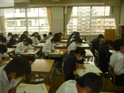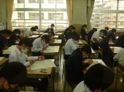 4限、2年3・4組の音楽のテストです。