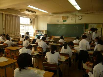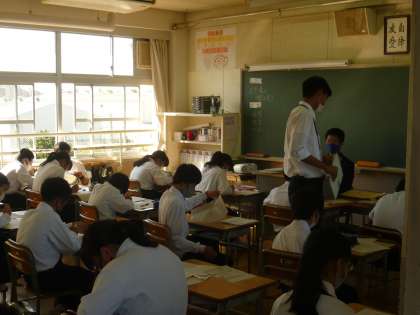 2限、1年1組は国語、1年2組は数学の授業です。返してもらったテストを見直しています。
