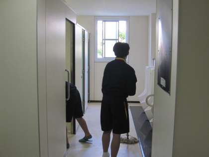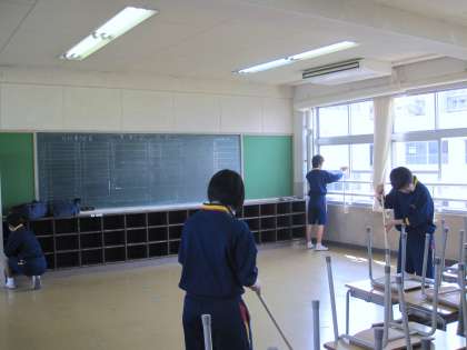 明日挙行される「第37回入学式」に向けて、新3年生が登校して清掃や準備をしてくれています。