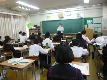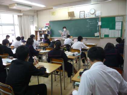 3限、3年3組は家庭、消費者トラブルの手口について、事例を聞いていました。3年4組は技術、家庭での栽培の課題について先生の説明を聞いているところです。