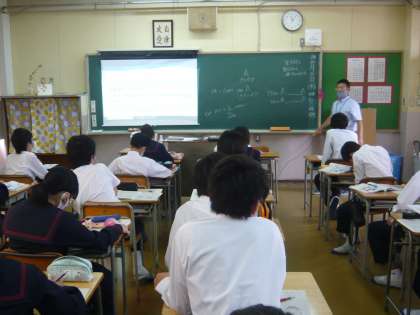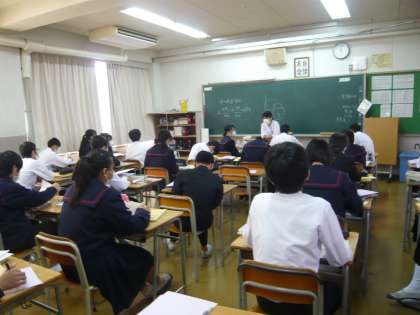 3限、2年1組は理科第二分野の学習、水蒸気について勉強しています。2年2組は理科第一分野、電流計と電圧計の使い方について学んでいます。