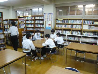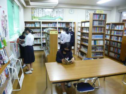 昼休みの図書室の様子です。憩いの場になっています。