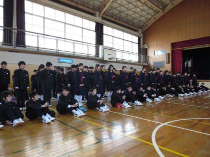新入生と在校生が対面し、挨拶と歓迎のメッセージを交換しました。