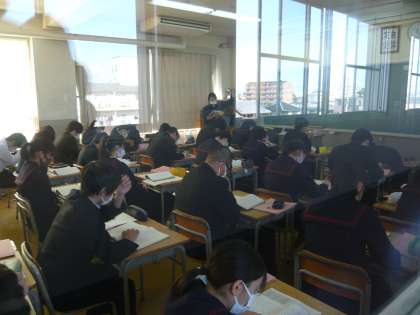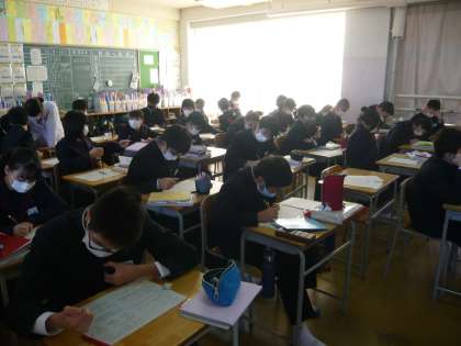 3限、2年3組は理科第二分野の授業、プリントに取り組んでいました。2年4組は国語、CDの朗読を聞いているところでした。