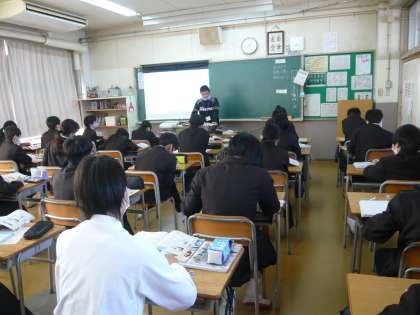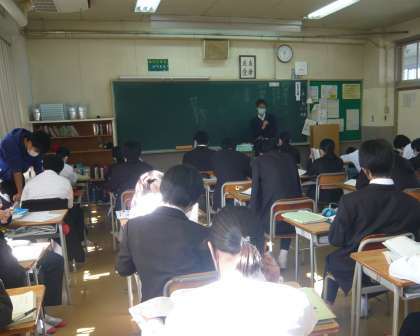 3限、1年3組は国語、解いた問題の答え合わせに入っていました。4組は理科、音についての学習です。