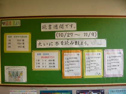 図書室よりの掲示板です。貸し出しの状況などが掲示されています。