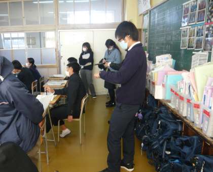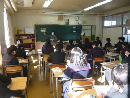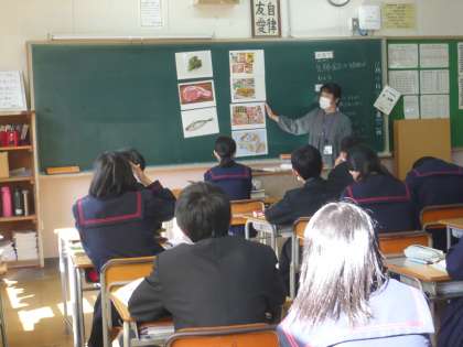 2限、2年1組でミニグループ研修として、家庭科の授業を行いました。同じグループの先生方が参観され授業研究の題材とする授業です。生鮮食品の特徴を学んでいきました。