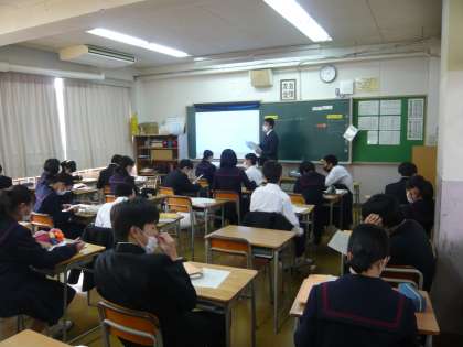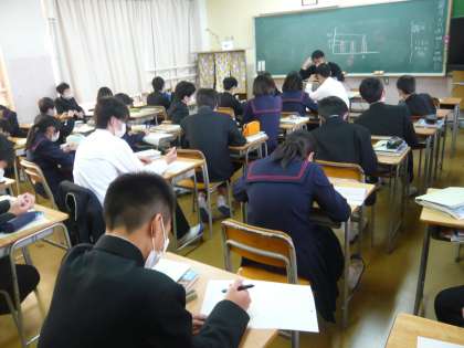 5限、2年1組は英語、これからプリントが配られます。2年2組は社会、クイズからスタートです。