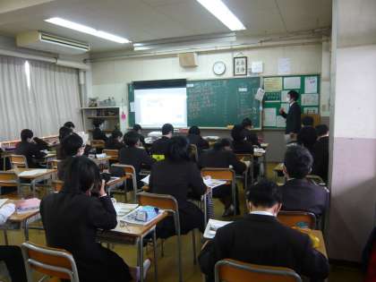 5限、1年3組は理科、実習生の先生が授業をしていました。生徒も先生も勉強です。1年4組は歴史、鎌倉時代の仏教についての学習です。仏教が広く庶民に広まった時代です。