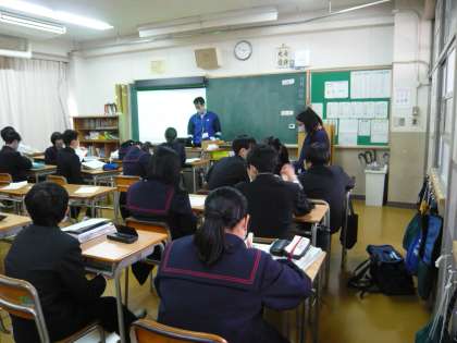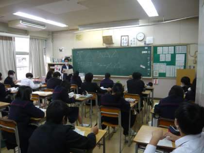 6限、3年3組は数学、相似の学習です。3年4組理科は、プロジェクターの調子が悪く、先生が別のプロジェクターを取りに行かれて、つないでいる最中でした。