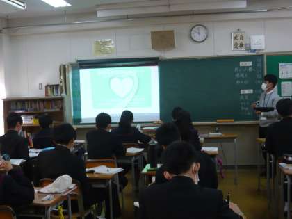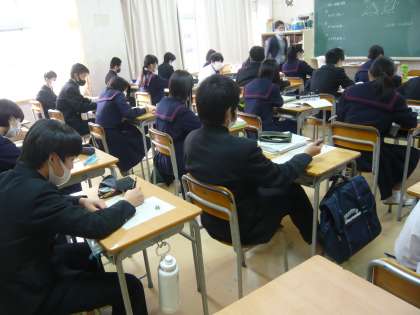 2限、3年3組は数学、相似の問題に取り組んでいます。3年4組は公民、臓器提供意思表示カードについて学んでいました。