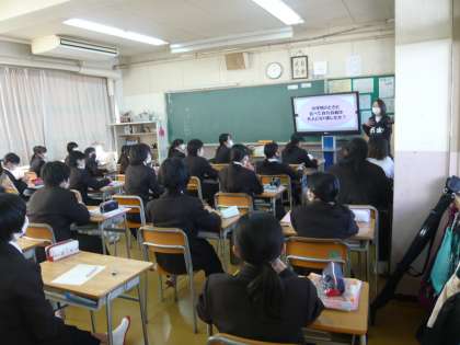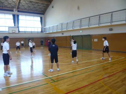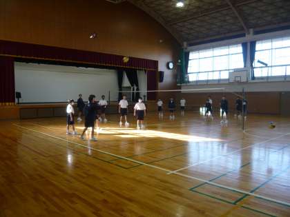 5限、1年3・4組の女子は教室で保健の授業です。男子は、体育館でバレーボールのゲームをしていました。少し、ラリーが続くようになってきました。