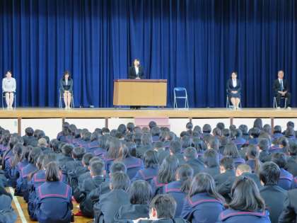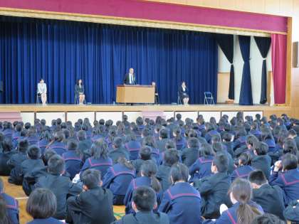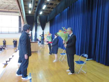 本日午後、離任式が行われ、本校を去られた先生方にご挨拶をいただきました。