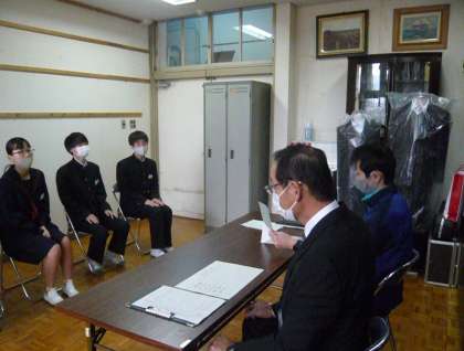 進路決定に向けてのことや中学校生活のことについて、短時間ではありましたが、質問しました。この機会に自分を見つめなおし、進路決定と残り少なくなってきた中学校生活を充実したものにできるよう、頑張ってほしいと思います。