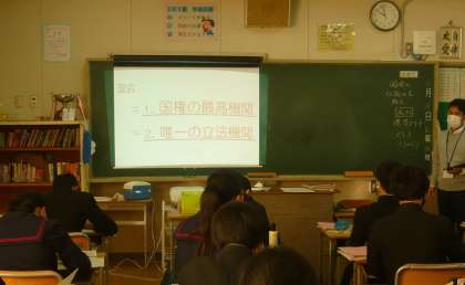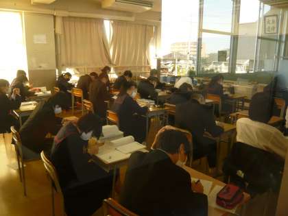 11月17日(火)2限、3年1組は公民、国会について勉強していました。3年2組は数学、小テスト?に取り組んでいましたが、あまりにも真剣なので教室には入れませんでした。素晴らしいです。廊下から撮りました。