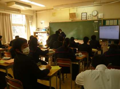 2限、3年3組は国語、語句の学習のスライドが大型テレビに映し出されていました。3年4組は歴史、冷戦の学習です。冷戦の時代から世界はずいぶん変遷していった感があります。