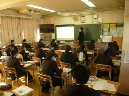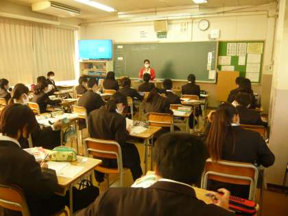 2限、1年1組は英語、見ている間、先生の指示はすべて英語でした。1年2組は地理、ASEAN(東南アジア諸国連合)について学習していました。