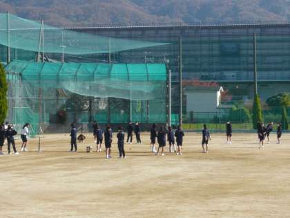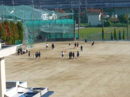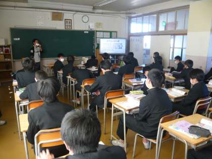2限、2年1・2組の男子は教室で保健の授業、薬物乱用について学習しています。女子はグラウンドでティーボールのバッティング練習をしていました。