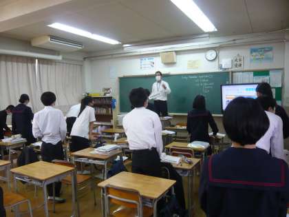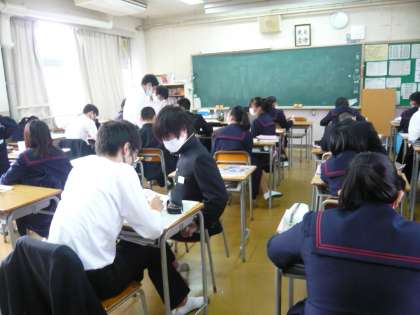 5限、3年1組は英語分割授業。どちらのクラスも単語の学習をしていましたが、それぞれのやり方で学んでいます。3年2組は歴史、テスト前学習のようです。