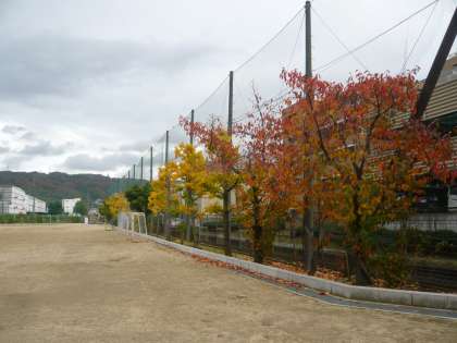 校庭の木々が色づいています。ふと見れば、生駒、飯盛の山々も美しくなってきました。