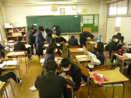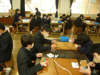 2限、2年1組は理科第2分野、テスト勉強です。2年2組は技術、ラジオ製作ではんだ付けに取り組んでいます。細かい作業ですが、「はんだ付けは楽しい」と言っている生徒もいました。