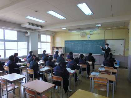 写真は1限目の社会と数学(少人数分割)の様子です。