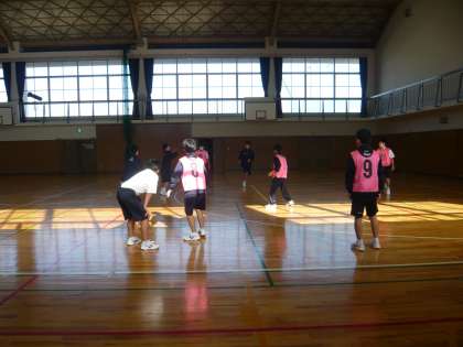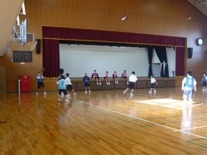 2限、1年3・4組の体育は、体育館でバスケットボールです。2コートに分かれてゲームをしていました。