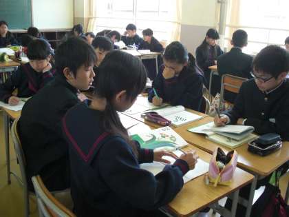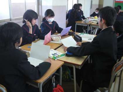 まず自分の考えをまとめ、次に班で意見を交流、そしてみんなでまとめの文を作っています。どのクラス、どの班も、意見が活発でしっかり協力できていました。
