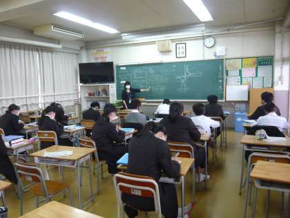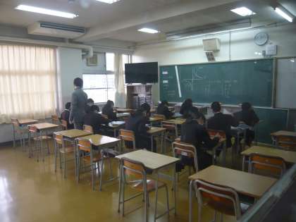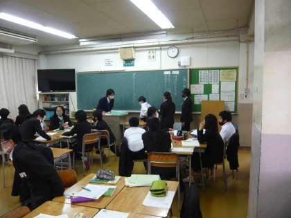 5限、1年1組は国語、暗唱のテストでした。1年2組は分割で数学の授業です。