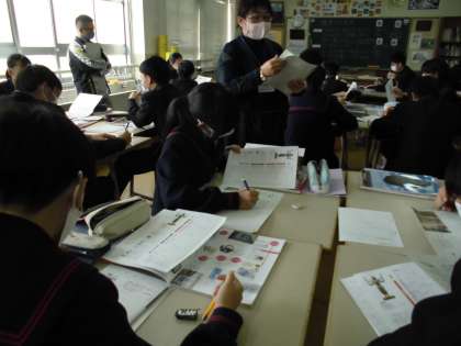 4限、2年2組美術のミニグループ研修(研究授業)の続きです。
