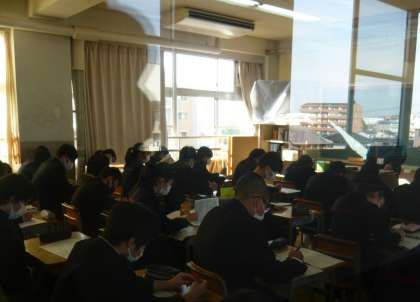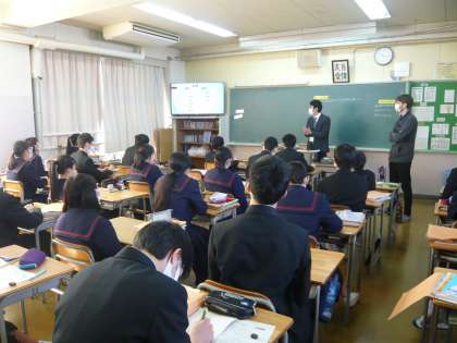 2限、2年3組は英語、代名詞の学習をしていました。2年4組は理科第一分野、確認テスト中だったので、教室には入りませんでした。