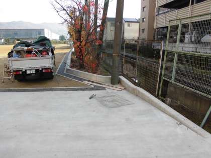業者の方に、グランドのフェンスの穴と体育館のドアを修理していただきました。