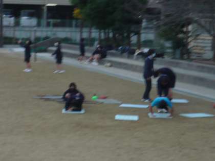 グラウンドの部活動の様子です。薄暗いので、うまくピントが合いません。