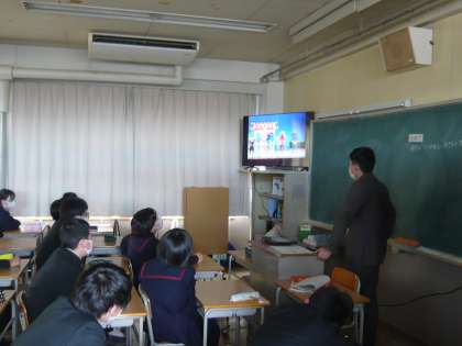 今日は、職員会議のため5限授業です。5限、3年生は聴力検査と教科の授業でしたが、1・2年生は総合の時間でした。2年生は男女共生について学んでいます。映像資料を見ているところでした。