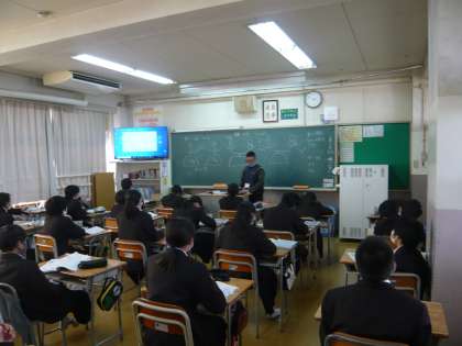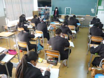 6限、1年1組は数学、プリントの問題で演習です。1年2組は理科、重さと質量の違いを考えています。