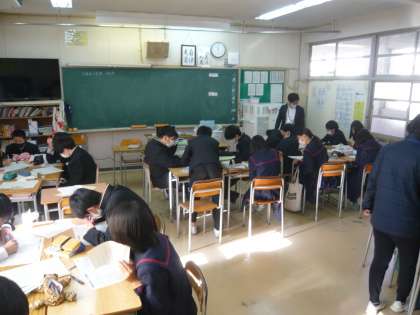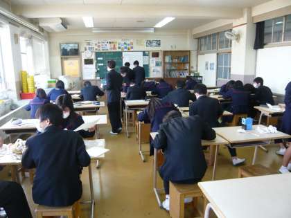 3限、3年3組は数学、「円周角の定理100問」に取り組んでいます。3年4組は美術、各自の課題に一生懸命です。