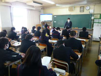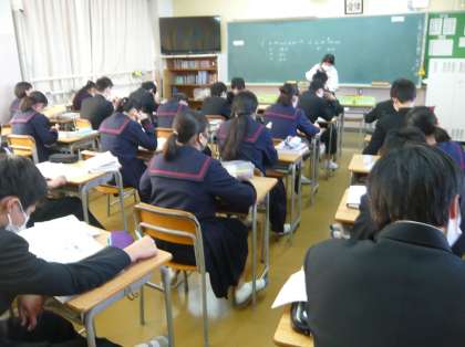 3限、2年3組は理科、チャレンジテストの過去問を解いていました。2年4組は英語、英語もプリントの問題に取り組んでいました。