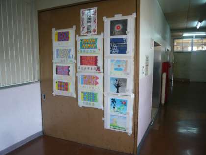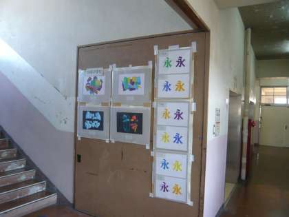 朝の全校集会で表彰した市中研の巡回美術展の出品作品が本校でも展示されています。