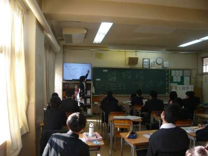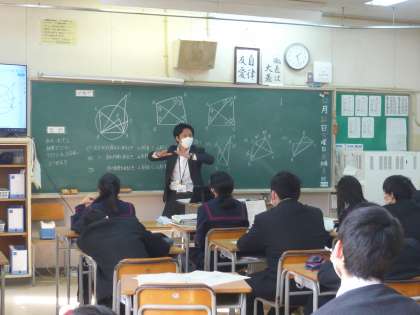 5限、2年次教員研修の一環として、3年3組で数学科の研究授業を行いました。円周角の定理を理解して、自力で問題を解けるようになることがめあてです。みんな一生懸命考えていました。