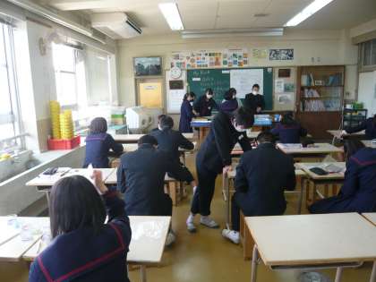 3年1組は公民、価格についての学習が始まります。3年2組は美術、マイブック制作中です。