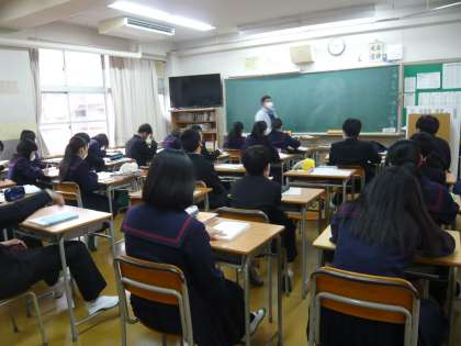 5限、3年3組は社会、世界の地形についての復習プリントを解いていました。3年4組は国語、今日から新しい非常勤の先生に教わります。よろしくお願いします。