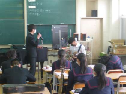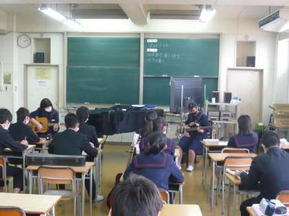 5限、3年1組は公民、税の種類を学習するようです。3年2組は音楽、実技テストということで、楽器や歌を披露してくれました。とても上手でした。