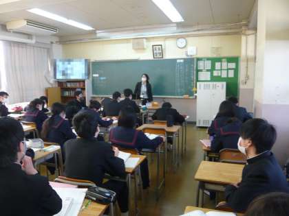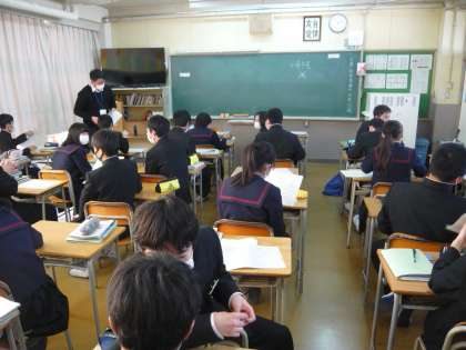 5限、2年3組は国語、「写真を読む」という学習です。2年4組は社会、復習プリントを配ってもらっています。