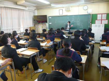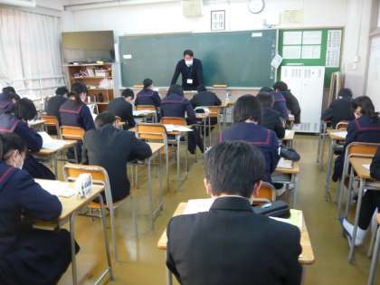 6限、2年生の特活は進路学習です。高校入試の仕組みについて学んでいます。2年1組、2組の様子です。