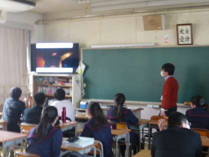 各学年、映像等も交えながら「避難経路の確認」「学校で大きな火事にあった場合」「消火器の使い方」「実際の避難の仕方」等について学んでいます。