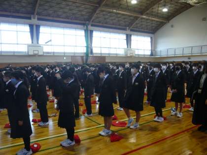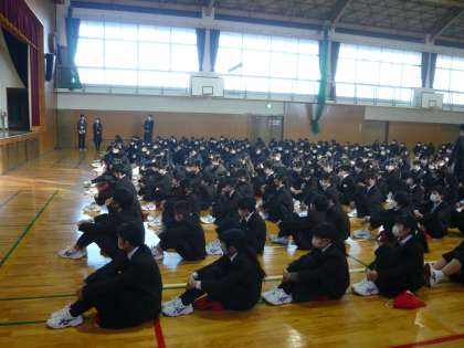朝の全校集会を行いました。税の作文の表彰の後、校長より3学期の過ごし方について各学年にむけて話をしました。最後に体育委員会からお知らせがありました。