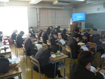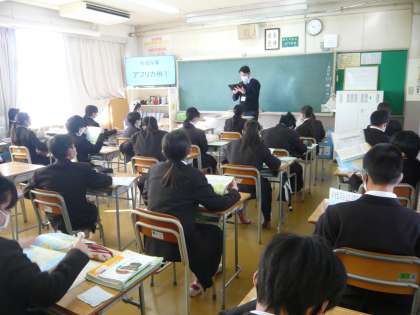 2限、1年1組は英語、熱心にワークの問題に取り組んでいます。1年2組は地理、アフリカの地形について勉強しています。