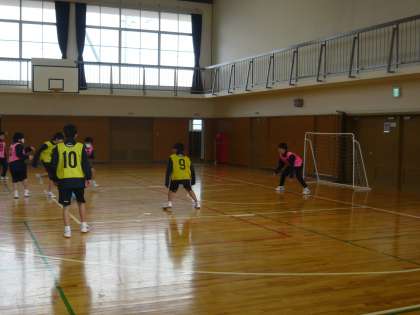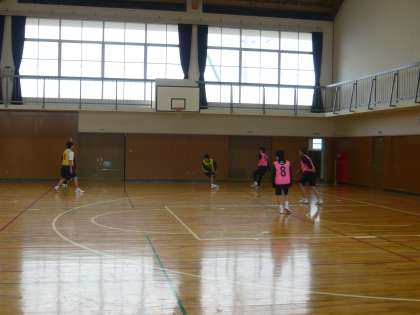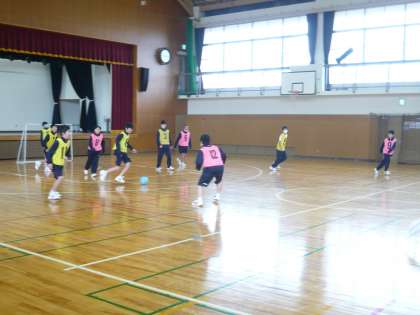 2限、1年3・4組の男子体育は、体育館でフットサルです。オールコートでゲームをしています。