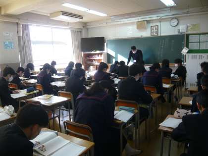 1限、2年生の道徳の時間は、「自分の行動に責任を持つとは」について考えています。2年1組、2組の様子です。