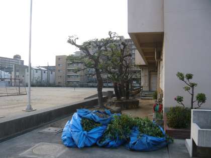 今週は、シルバー人材センターの方々に、植木の剪定をしていただいています。